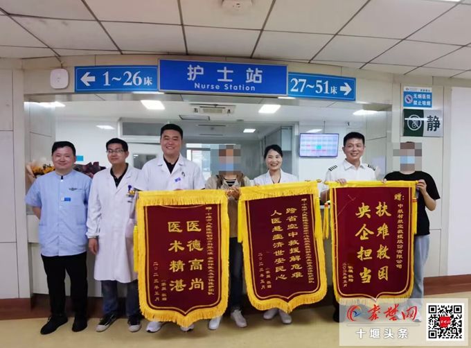 秦楚网-十堰头条讯 记者 吕鑫 特约记者 郑桢桢 报道:5月15日,五一前夕经由十堰人医直升机从陕西省宝鸡市岐山县转运回院救治的十堰籍老乡陈先生(化姓)即将康复出院,特地定做了3面锦旗,分别送给十堰人医急危重症中心航空救援科、骨科中心创伤骨科及中航材航空救援机组。
