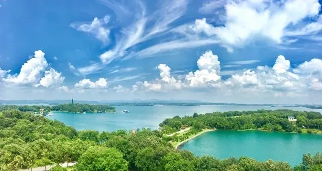漳河风景区104平方公里的水域浩瀚无边,800公里的湖岸线蜿蜒曲折,一座座岛屿突破水平面向上,星罗棋布如明珠镶嵌湖面,尽显“千岛湖”神韵。