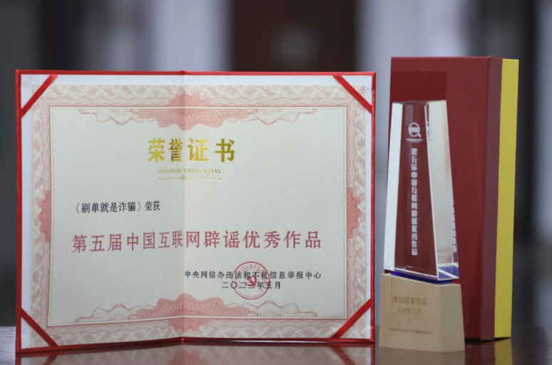 由麻城市公安局选送的公益宣传反电信网络诈骗短视频《刷单就是诈骗》荣获第五届中国互联网辟谣优秀作品!