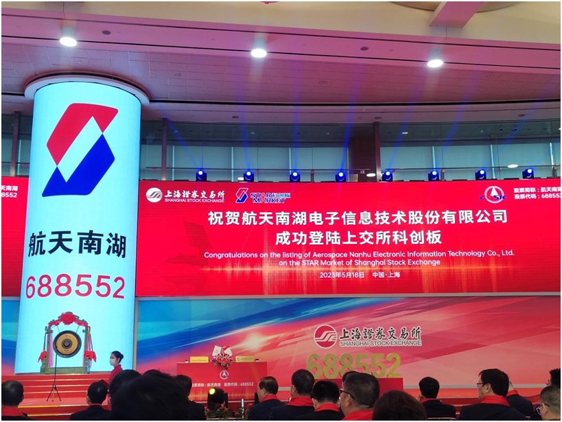 5月18日上午9时30分,航天南湖电子信息技术股份有限公司A股股票在上海证券交易所科创板鸣锣开市,证券简称为“航天南湖”,证券代码为“688552”,发行价格21.17元/股。该公司A股股本为33724.8万股,其中7654.4959万股今日起上市交易。