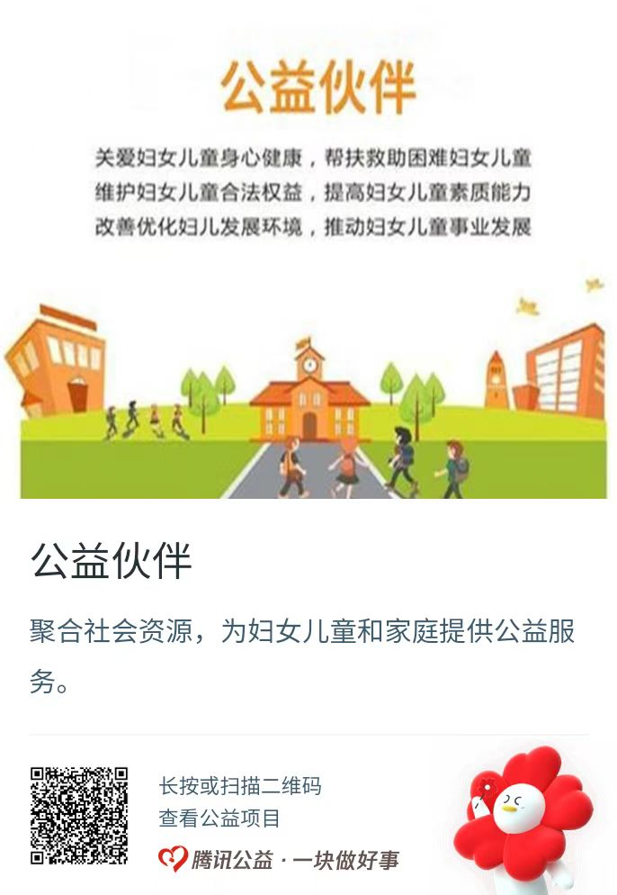 妇女是物质文明和精神文明的创造者,是推动社会发展进步的重要力量。少年儿童是祖国的未来,是中华民族的希望。家庭是社会的基本细胞,是人生的第一所学校。“公益伙伴”项目将为妇女儿童和家庭提供巾帼志愿服务、妇女发展、妇女健康守护、妇女儿童合法权益维护、家庭教育指导、家庭文明建设、女童关爱、儿童安全保护等公益服务,不断满足妇女儿童和家庭对美好生活的向往。