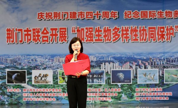 荆门市人大常委会副主任舒君、荆门市政协副主席、市社科联主席程彻、湖北省生态环境厅二级巡视员贺晓军、荆门市掇刀区副区长彭艳、荆门市自然资源和规划局副调研员刘慧娟等领导,荆门市爱鸟文化研究会40多名爱鸟人士及军马场学校200名师生等,参加了荆门市联合开展"加强生物多样性协同保护"宣传启动仪式。本次生物多样性保护公益宣传活动,主办方还宣读了《生物多样性保护倡议书》,展示了“荆门生物多样性保护成果”,发放了《荆门生物多样性保护宣传手册》。