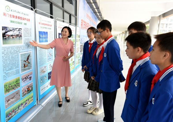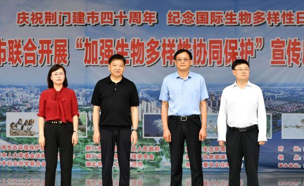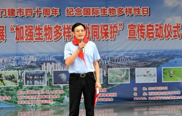 5月21日,为庆祝荆门建市四十周年,纪念第23个国际生物多样性日,贯彻落实党的二十大提出“中国式现代化是人与自然和谐共生的现代化”指示精神,展示生物多样性保护成效,呼吁社会各界积极参与生物多样性保护事业,推动荆门市人大常委会《关于加强生物多样性协同保护的决定》,荆门市生态环境保护委员会、荆门市人大常委会法制工作委员会、荆门市社会科学联合会、荆门市掇刀区委、区人民政府、荆门市漳河新区管理委员会、湖北省漳河工程管理局、荆门市生态环境局、荆门市自然资源和规划局、荆门市爱鸟文化研究会等联合开展“加强生物多样性协同保护”宣传启动仪式,在掇刀区军马场学校举行。