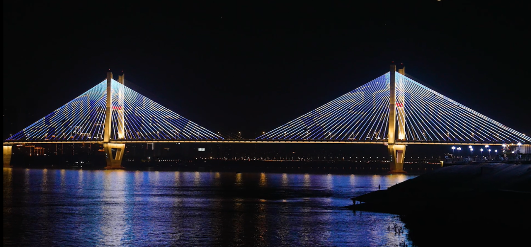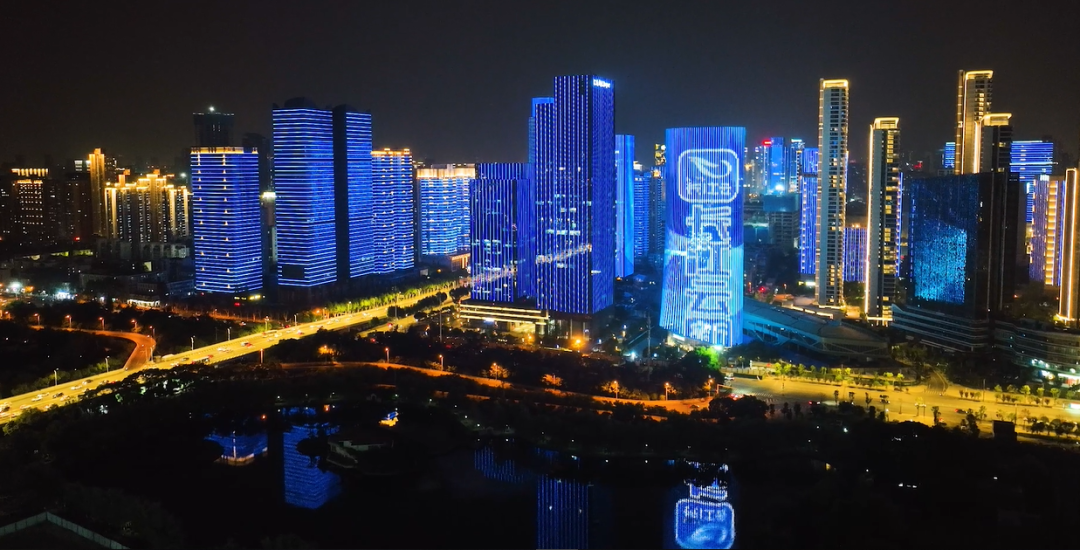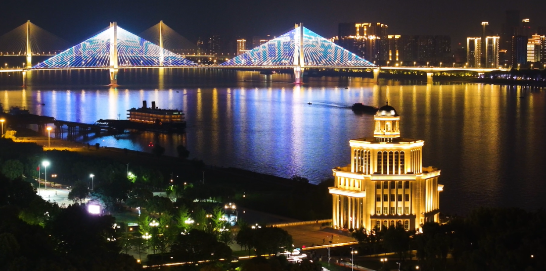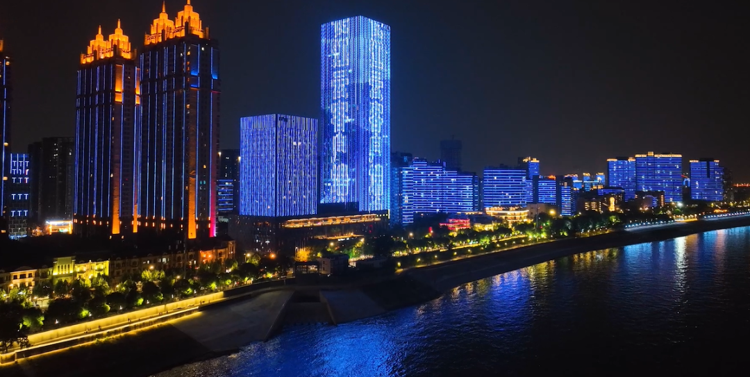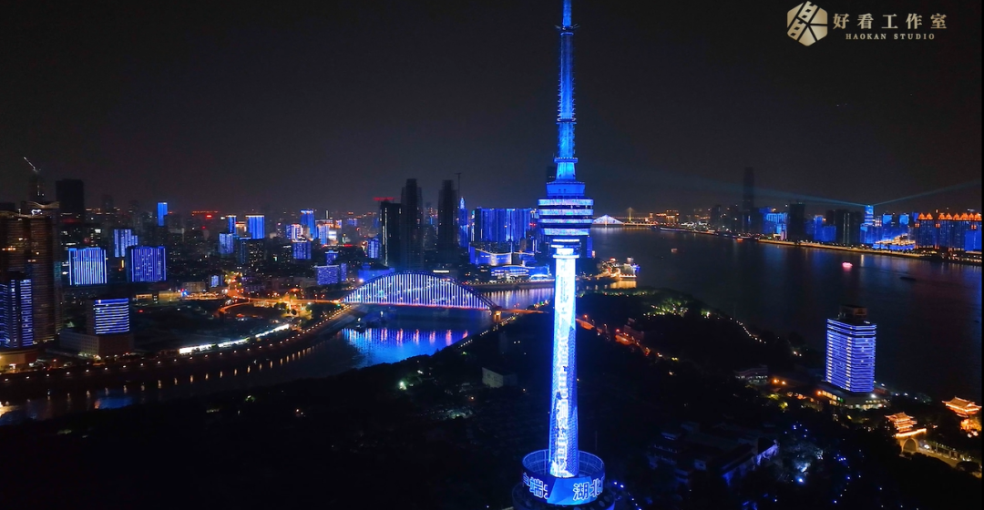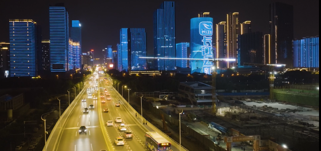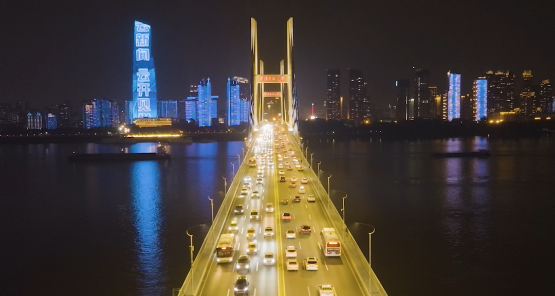 ▲两江四岸灯光秀为“长江云新闻”点亮