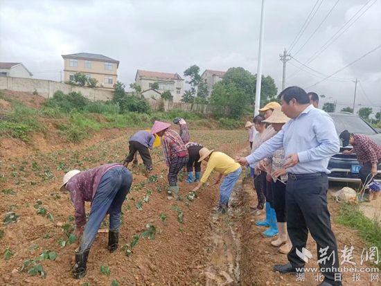 荆楚网(湖北日报网)讯(通讯员毛红平 刘新辉)5月22日,国家马铃薯产业技术体系岗位科学家、华中农业大学蔡兴奎副教授和入驻“红安红薯科技小院”的硕士研究生刘训龙、曲玉阳来到红安县瑞沣种植养殖合作社红薯种植基地里,他们拿着笔记本写写画画,用实验仪器反复称量。