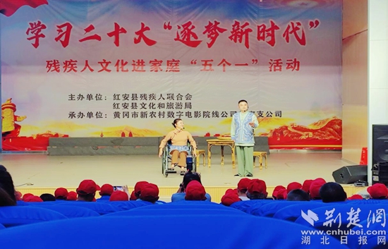 荆楚网(湖北日报网)讯(通讯员程应良)5月21日,红安县残疾人联合会、红安县文化和旅游局联合举办“学习二十大 逐梦新时代”为主题的第二期残疾人文化进家庭“五个一”活动,帮助残疾人朋友游一次园、参观一次展览、读一本书、参加一次文化活动、看一场电影。