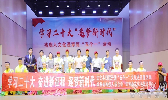 红安县残联理事长阮俊介绍,开展"残疾人文化进家庭"五个一"系列活动,是为了帮助残疾人走出家门,融入社会,共享社会文明和经齐发展成果,不断丰富残疾人精神文化生活,进一步教育和引导了广大残疾人坚定信念,提高残疾人获得感和幸福感。