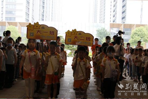 16日当天,来自光谷中心幼儿园、小金星幼儿园、航天城幼儿园、北辰优+幼儿园、光谷满庭春幼儿园的孩子们,在校园小导游的带领下,走进了光谷十八小校园。
