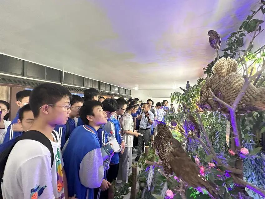从科普教育基地正门而入,可以看到孔雀漫步而行在园区道路两旁;往园区里走,陆续会看到猕猴、蓑羽鹤、猪獾、凤头鹰、大鵟(kuáng)、梅花鹿等野生动物,游客们可以近距离接触、投喂、观察它们。