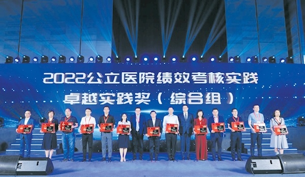 本报讯 通讯员 田瑞 王慧 报道:5月19日至21日,2022中国公立医院绩效考核实践暨第十七届中国医院院长年会在湖南省长沙市召开。市太和医院荣获2022年度中国公立医院绩效考核实践4个奖项(下图为颁奖现场)。
