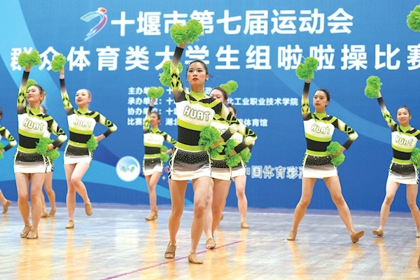 湖北汽车工业学院啦啦操队活力四射。