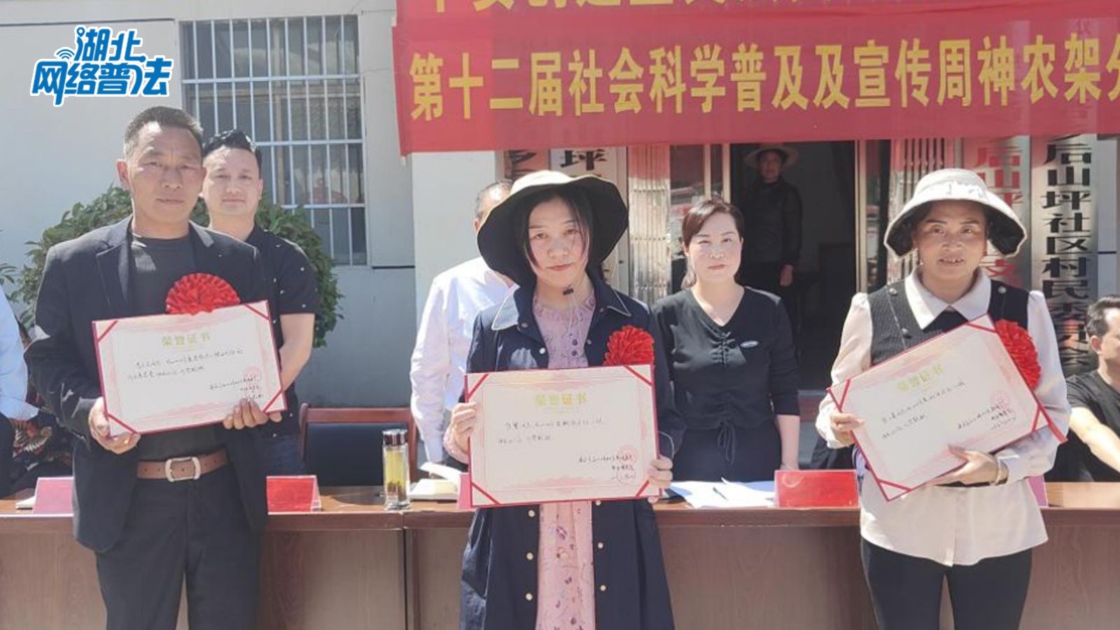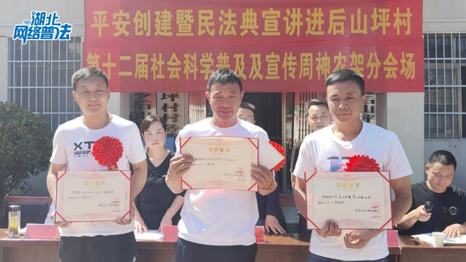 为引领乡风文明新风尚,助力法治宣传新成效,在宣讲大会上,首先对后山坪村11户先进典型家庭进行了表彰,表彰对象涵盖勤劳致富、遵纪守法、孝亲敬老、环境整治等典型,为他们佩戴大红花,颁发荣誉证书,支持和鼓励他们继续做好乡村文明和法治建设的示范者,进一步引领时代风貌,助力乡村振兴。