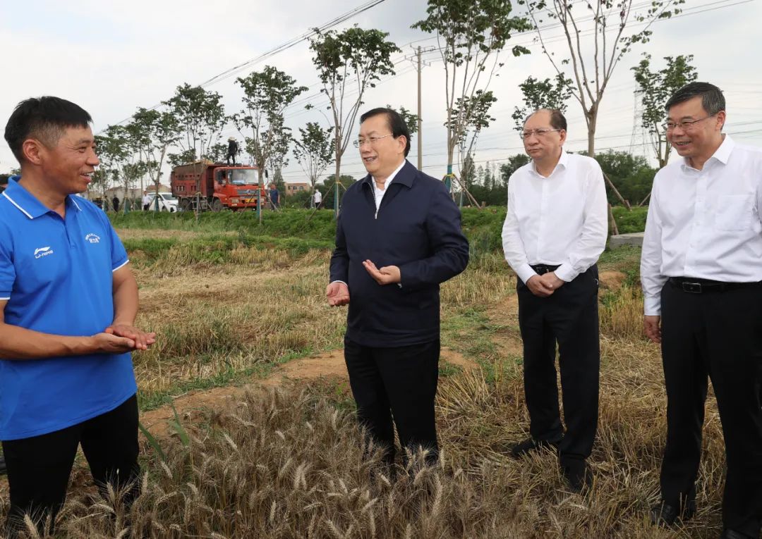 云梦县胡金店镇联合村,收割机在麦田里来回穿梭,一派丰收景象。王忠林走进田间,察看小麦收割情况,与农户交谈。他强调,要不误农时全力抓好抢收作业,精心做好机收组织服务,确保应收尽收、颗粒归仓;落实粮食收购政策,促进增产增收,保护农民种粮积极性;压茬推进夏播夏种,推广良种、良机、良技,抓好田间管理,有效提高粮食产量,扛牢保障国家粮食安全责任。