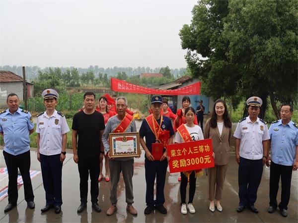 近日,市消防救援支队主动联合沙市区应急局、沙市区团委、岑河镇政府,共同组织“送奖报喜团”为荣立个人“三等功”的瞿敏同志“送奖到家”,并传递支队党委与地方政府的亲切慰问与深情关怀。