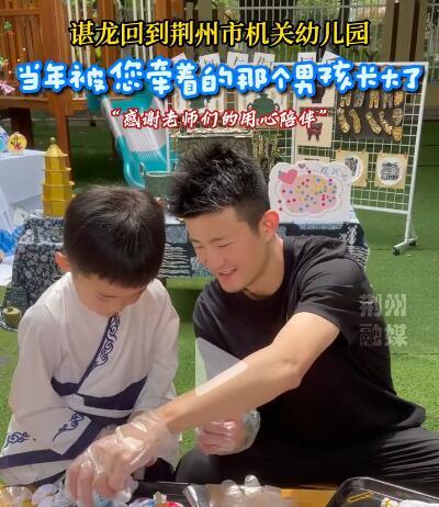 上午10点半,谌龙来到了荆州市机关幼儿园,见到了昔日的幼儿园老师周老师,参观了幼儿园户外自主游戏区和教学楼,与小朋友一起做游戏,品尝了幼儿园的美食,寻回儿时记忆。