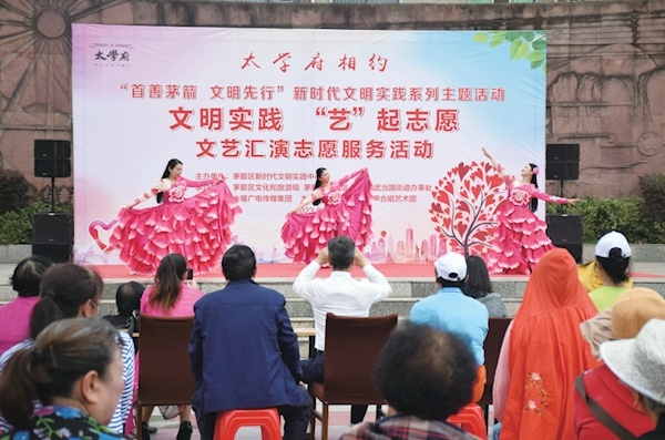 5月24日上午,由茅箭区新时代文明实践中心主办的“文明实践‘艺’起志愿”“首善茅箭文明先行”文艺汇演志愿服务活动走进赛武当广场。志愿者们用精彩的文艺表演,表达了对美好生活的祝愿。下一步,茅箭区新时代文明实践中心将开展丰富多彩的文明实践活动,丰富辖区群众精神文化生活,将“送文化”“种文化”“传精神”有效结合,实现月月有主题、周周有活动,切实增强群众的获得感、幸福感、安全感。记者刘旻通讯员连疆石光娟摄