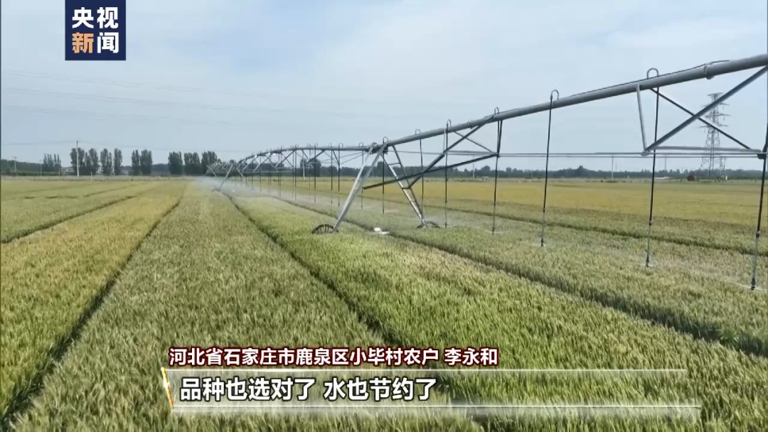 河北省石家庄市鹿泉区小毕村农户 李永和:过去浇这三百多亩的时候,用十来个工,现在用两天的时间,两个人就可以完成了。今年小麦选用的是新品种,是中麦6032。品种也选对了,水也节约了,所以今年小麦长势良好。