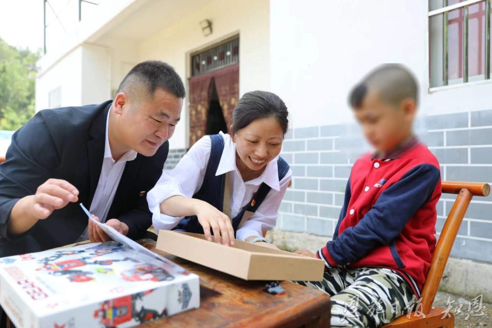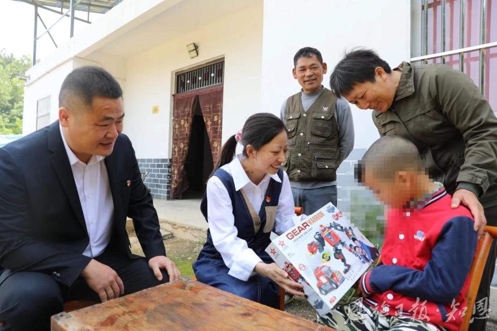 巴东县沿渡河镇民族中心小学党员教师为特殊学生送去礼物和祝福。