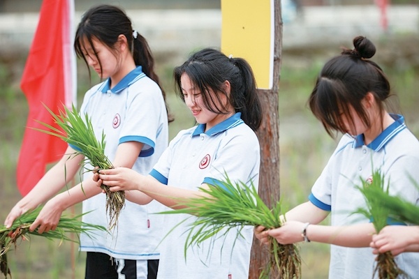 “我们把课堂搬到田间地头,就是希望同学们下农田、识五谷,体验到劳动的艰辛和成功的快乐,懂得有付出才会有收获的道理,将学、教、乐、劳有机结合起来,有效促进学生德智体美劳全面发展。”市车城高中副校长葛育红说。