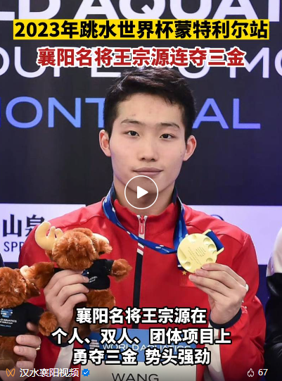 2023年跳水世界杯蒙特利尔站,襄阳名将王宗源连夺三金!