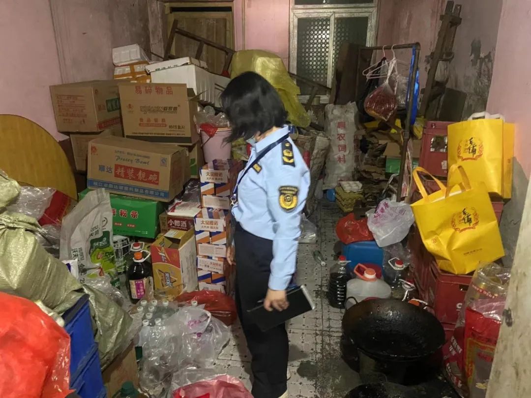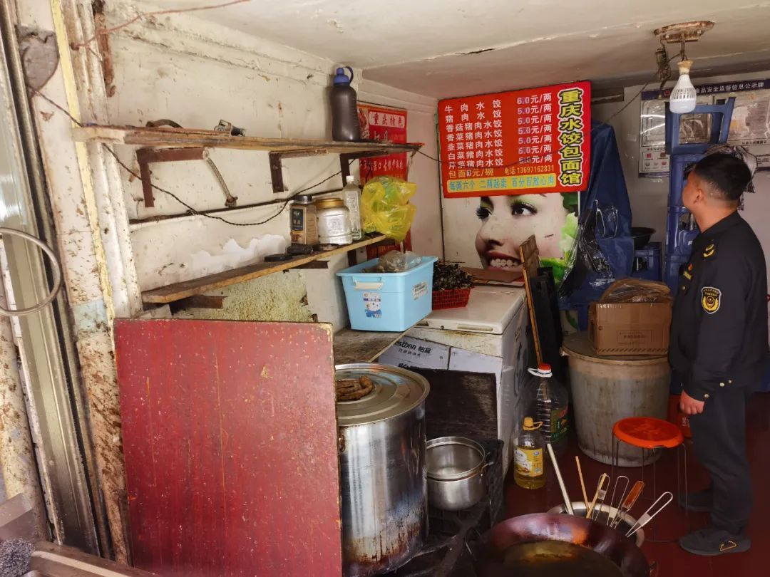 存在问题:环境卫生差;灶台油垢多,物品摆放混乱;食品原材料未落实进货查验制度。