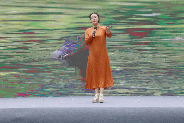 国家一级演员、湖北省歌剧舞剧院女高音歌唱家、韩英第四代扮演者马娅琴表演了女声独唱《洪湖水浪打浪》。跟随优美旋律,全场师生感悟革命先辈的牺牲与奉献,仰望不忘初心、牢记使命的巍峨与崇高。