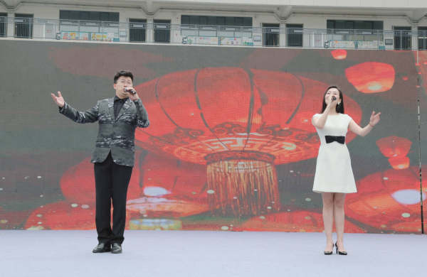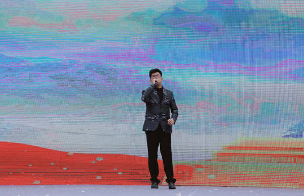 中国音乐金钟奖获得者、武汉音乐学院男高音歌唱家操奕恒演唱《孤勇者》,听到歌名,孩子们欢呼雀跃,歌声响起,全场跟唱,掀起本场汇演的最高潮。