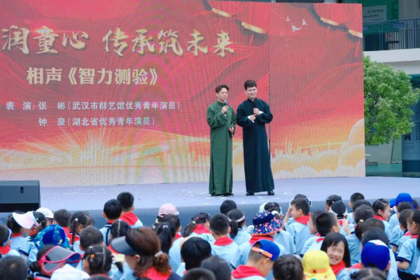 武汉市群艺馆优秀青年演员张彬、湖北省优秀青年演员钟豪表演的相声《智力测验》,娴熟的说学逗唱,让小观众们或捧腹大笑。