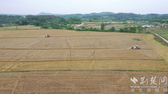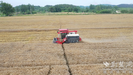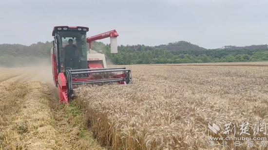 “我们村引进市场主体种植小麦600亩,亩产达到800斤以上。这几天组织大型机械进行收割,为下一步种植黄豆打好基础。”红安县永佳河镇尾斗山村党支部书记程利群说。