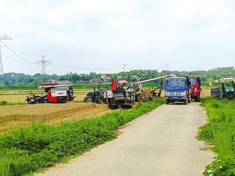 小满过后,我市近80万亩小麦进入收割高峰期,农民正抢抓农时,开展夏收。图为曾都区府河镇麦林岗村小麦机收现场。 (随州日报全媒记者林超、通讯员孙友汉摄)