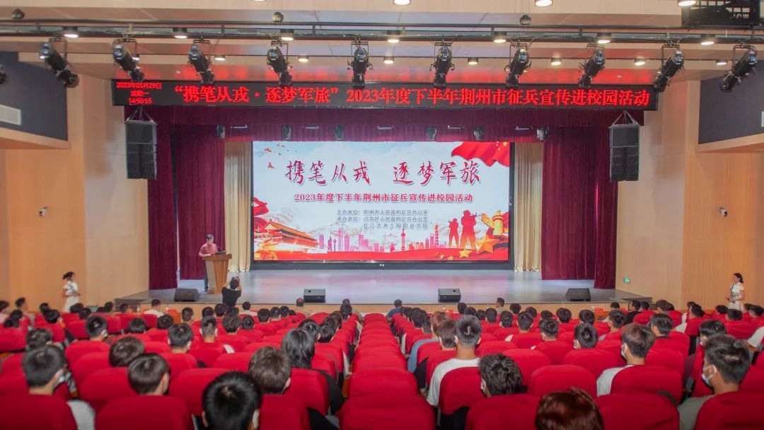 为进一步宣传国家征兵政策,鼓励青年学生携笔从戎,投身军营,5月29日下午,荆州市人民政府征兵办公室在长江艺术工程职业学院组织开展“携笔从戎,逐梦军旅”2023年下半年征兵宣传进校园活动。