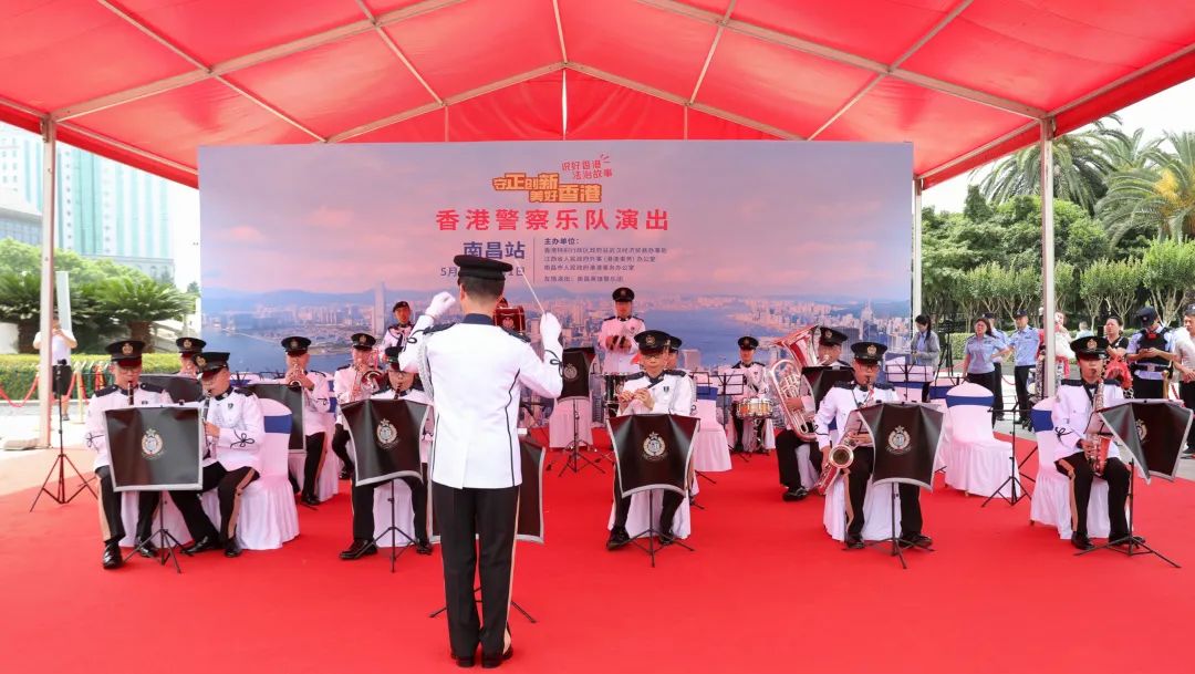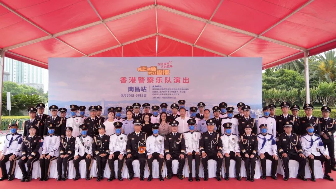 5月30日,香港警察乐队早上在八一广场与南昌英雄警乐团同台演出,共奏爱国旋律,交流赣港文化。在摄氏37度的高温下,两个乐团分别演绎了多首经典歌曲,吸引了许多热情的观众。乐队非常珍惜这次两地警队的文化合作机会,期待未来可以跟更多不同的单位切磋交流。