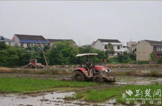 荆楚网(湖北日报网)讯(通讯员丁元中)5月30日,鄂城区汀祖镇凤凰村种田大户徐师傅在抢收完小麦后,迎来了千余亩水稻种植的黄金时期。