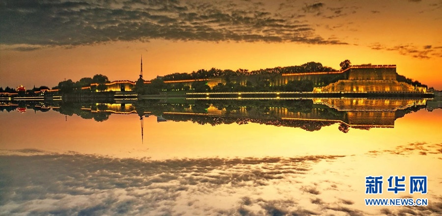 荆州古城墙沐浴在夕阳余晖里。新华网发 黄凤雏 摄