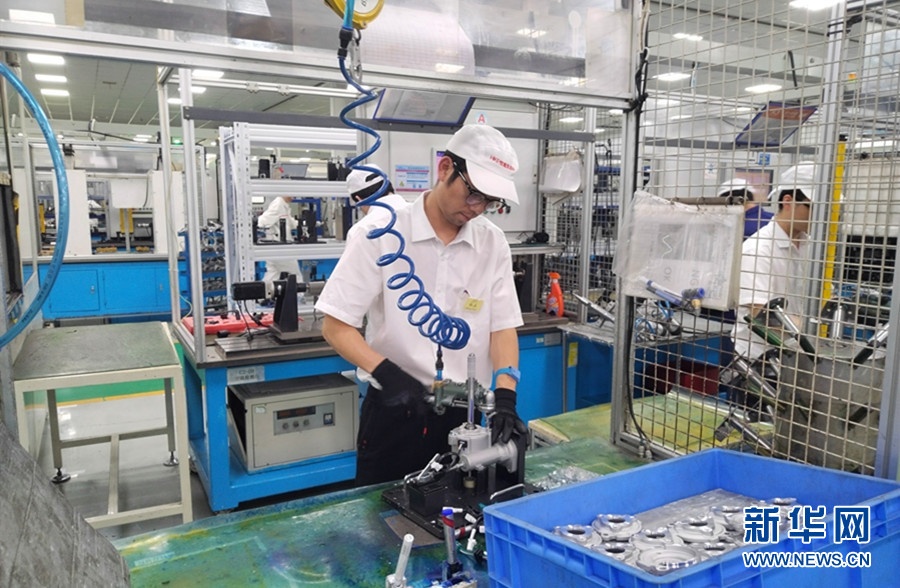 湖北恒隆凯迩必汽车电动转向系统有限公司生产车间。新华网 张潘 摄