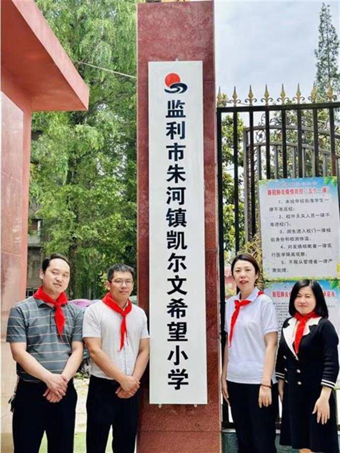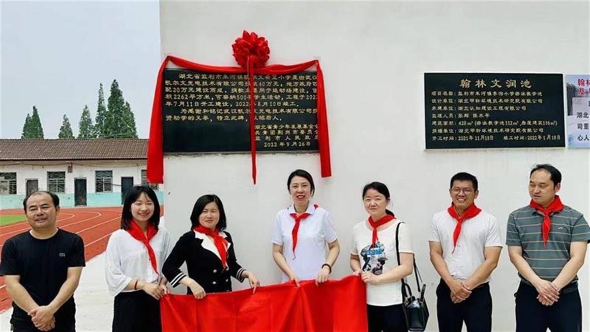 “六一”当天,监利市朱河镇李沟中心小学的师生们收到一份特殊礼物——凯尔文希望小学竣工并投入使用。武汉凯尔文光电技术有限公司总经理张杨晶晶,湖北省希望工程办公室副主任、湖北青少年发展基金会副秘书长邹清选,共青团荆州市委青发部部长李飞,共青团监利市委副书记李倩,共同参与揭牌。