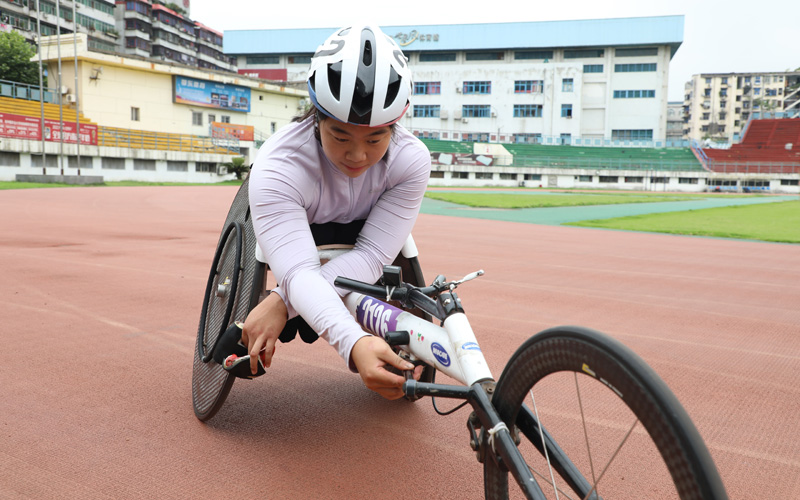 张园调整训练轮椅。