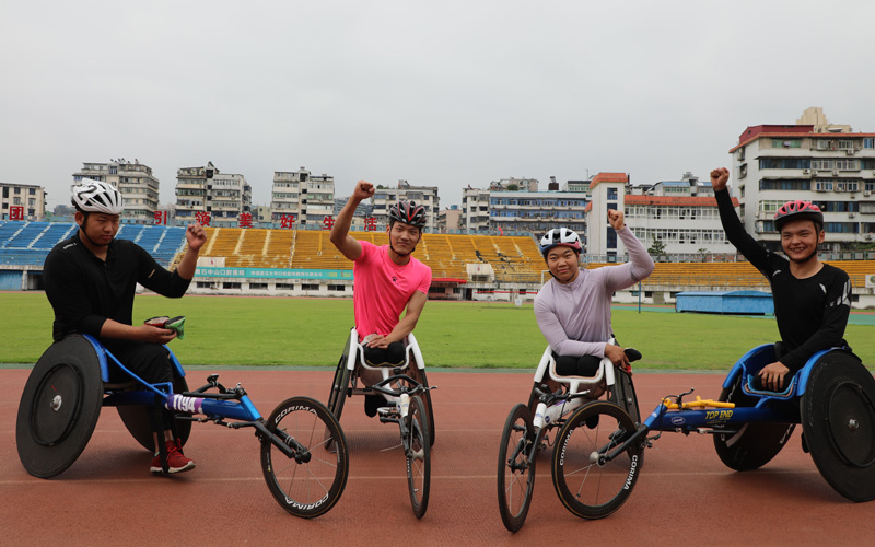 张园(左三)参加“韵味杭州”2023年全国残疾人田径锦标赛。