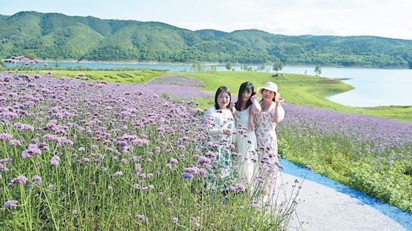 6月1日,记者拍摄的郧阳区安阳镇汉江绿谷紫色花海。汉江绿谷是该区着力打造的湖北省水土保持科技示范园,初夏时节,景区种植的马鞭草花绚丽绽放,如紫色花海,吸引游客纷纷前来打卡。特约记者王涛摄