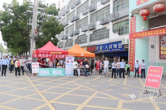 为更好地与考生提供暖心服务,打造暖心高考,该考点积极搭建遮阳遮雨帐篷区,供考生休憩;将县总工会赠送的爱心矿泉水发放与考生等,全方位助力考生。