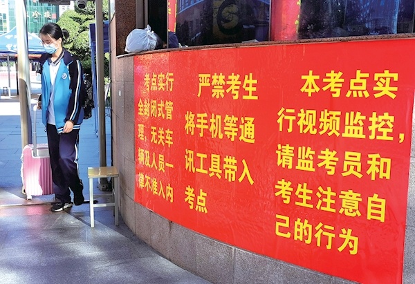 昨日下午,郧阳中学考点门口,醒目的考纪提示所有考生不能心存侥幸。