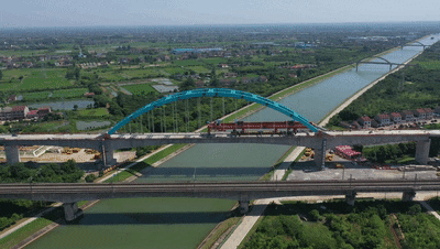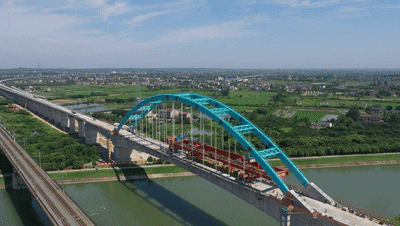 荆荆铁路江汉运河特大桥全长309.6米,设计采用连续梁拱跨越江汉运河,是全线的工期控制性工程。