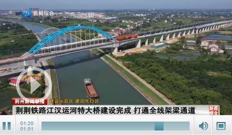 视频:荆荆铁路江汉运河特大桥建设完成 打通全线架梁通道