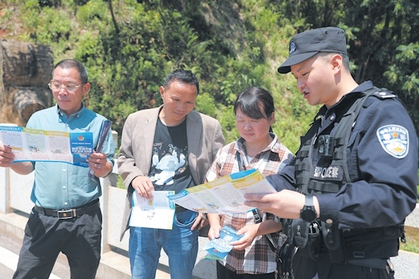 6月6日,竹山县公安局擂鼓派出所民警来到擂鼓镇西河村,向广大村民、学生发放反诈宣传册。该县紧盯电信网络诈骗翻新的“花样”,及时掌握情况,宣传防诈知识,全力守护好百姓的“钱袋子”。