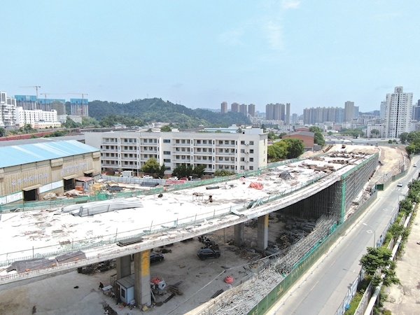 昨日,朝阳南路改线工程跨襄渝铁路高架桥下部结构全部完工,整个桥梁计划9月份完工。