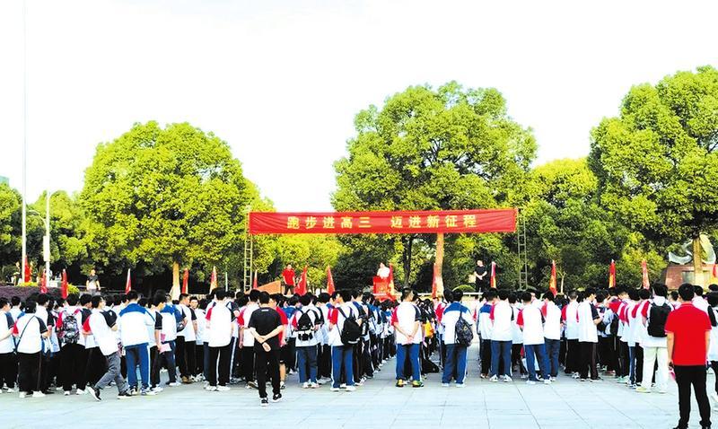 为更好实现高二升高三的过渡,激发2021级学生们的斗志,以最佳的状态奔赴高三,近日,随州一中举行“跑步进高三,迈进新征程”动员大会。(随州日报通讯员万田甜摄)