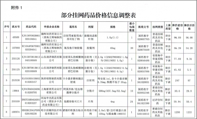 按照《省医疗保障局关于做好公立医疗机构药品采购准入及其动态调整工作的通知》 (鄂医保发[2021]46 号) 有关规定我们对近期主动申请下调挂网价的部分挂网药品进行了审核及公示,现将价格信息调整有关事项通知如下。