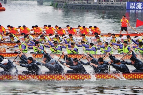 “咚、咚、咚……”荆州古城脚下,九龙渊碧波之上,来自全国各地的27支代表队、686名运动员教练员劈波斩浪,挥桨争锋,展开一场激烈的龙舟竞渡。本次龙舟赛共设3个竞赛组别,分别为男子公开组22人标准龙舟、女子公开组12人龙舟、大众组22人龙舟,共设奖金30万元。其中,男子公开组、女子公开组参加直道100米、200米、500米及3000米绕杆赛四个项目的角逐,大众组参加直道200米、500米的角逐。