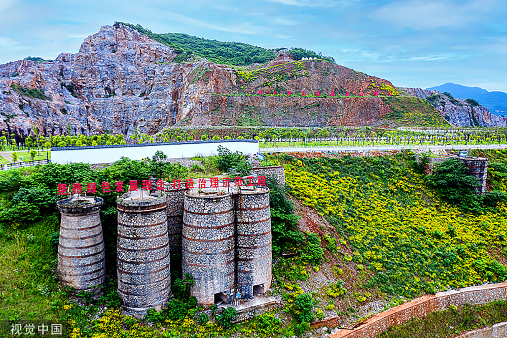 经过大面积开采,当地矿产资源逐渐枯竭,矿山人也在积极寻求转型的突破口。他们不屈不挠,用了40年时间,硬是在废石堆上,种下了数十万棵槐树,让曾经满目疮痍的矿山,披上了一层绿衣。如今,黄石通过生态修复,在挖掘矿坑堆成的岩石山上种植生态复垦林,创造出在石头上种树,石上开花的奇迹。孜孜以求人与自然和谐共生的现代化之道,打造“山水园林市、最美工业城”,黄石在奋进中奋斗。