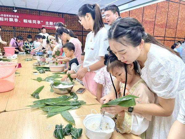 昨日,市图书馆少儿部开展“粽叶飘香、粽味同享”主题分享活动,工作人员为大家讲解了端午节的由来和包粽子的习俗,带领大家一起包粽子,体验劳动的乐趣,感悟爱国精神内涵。(记者 郑 洁 通讯员 常佩竹 摄)